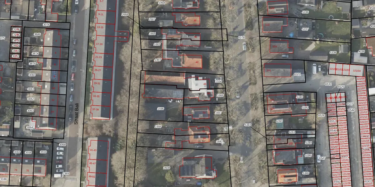 Gebruik de zoekbalk of klik op een perceel voor informatie over de adressen binnen dit perceel.