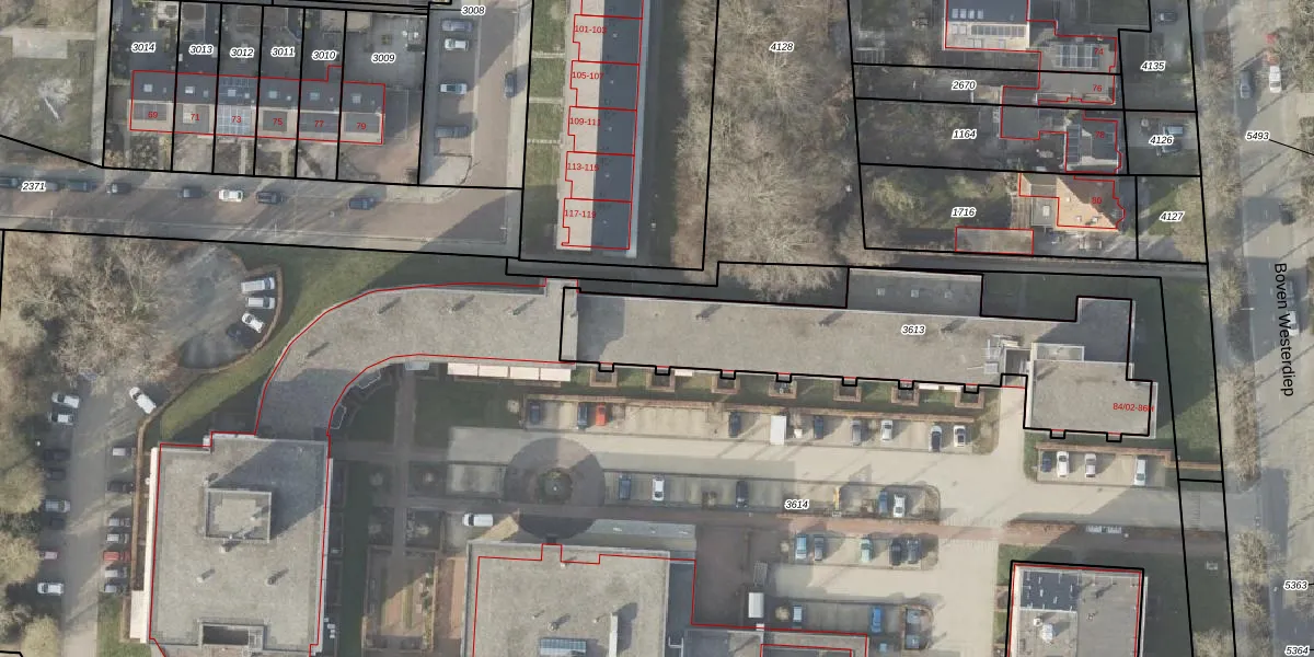 Boven Westerdiep 84-38 is gelegen op kadastraal perceel VDM00C3613. Deze kadastrale aanduiding is uniek en wordt gebruikt door het Kadaster om eigendomsrechten en andere zakelijke rechten vast te leggen. Het perceel maakt onderdeel uit van de kadastrale gemeente Veendam.