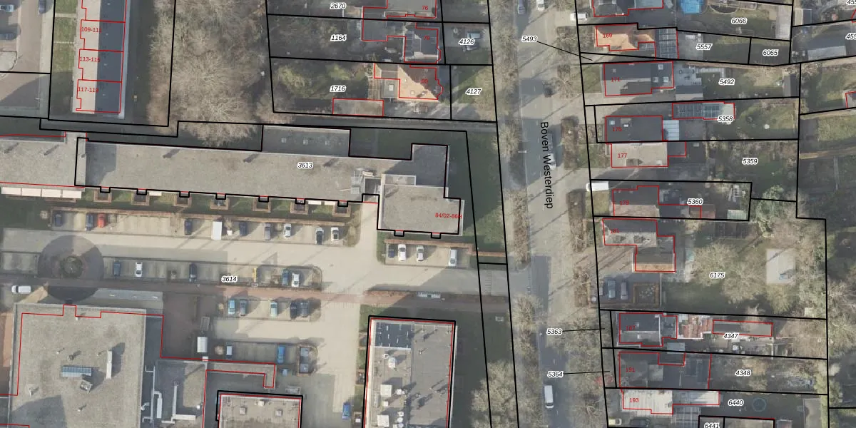 Het perceel waarop Boven Westerdiep 84-44 staat heeft een oppervlakte van 1214 m². Dit is een zeer groot perceel. De perceeloppervlakte wordt geregistreerd door het Kadaster. Gedetailleerde informatie over de maten van dit perceel kunt u vinden in het rapport Kadastrale kaart met maatvoering van Boven Westerdiep 84-44.