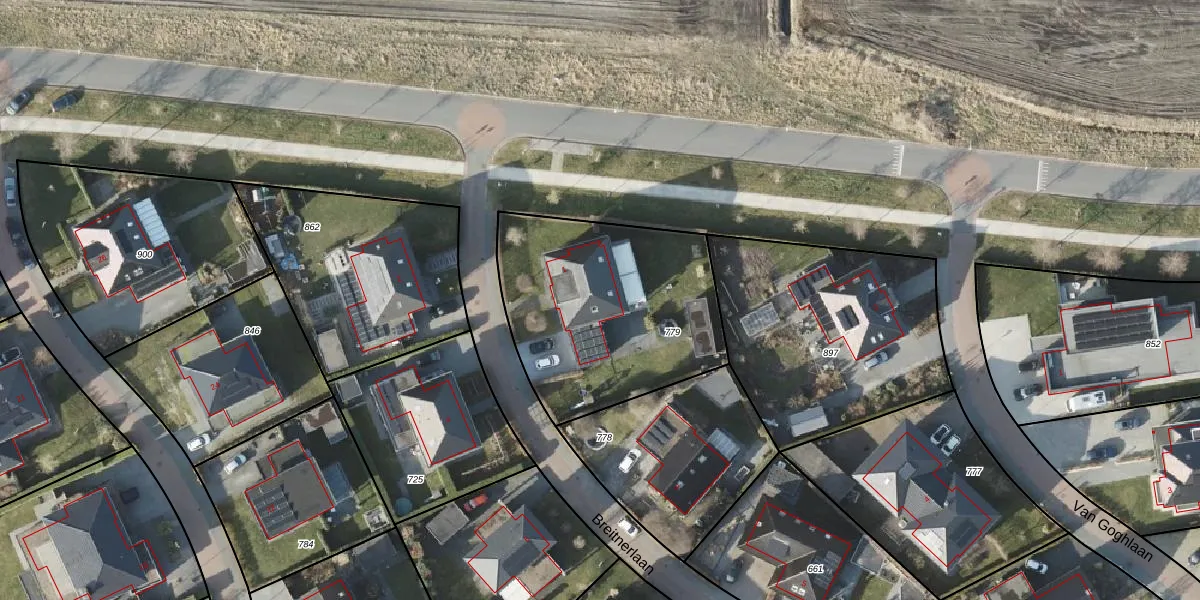 Gebruik de zoekbalk of klik op een perceel voor informatie over de adressen binnen dit perceel.