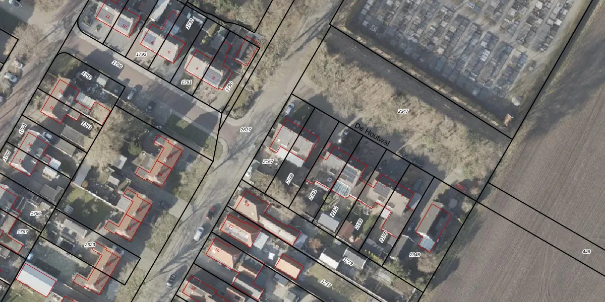 Het perceel waarop De Houtwal 2 staat heeft een oppervlakte van 304 m². Dit is een groot perceel. De perceeloppervlakte wordt geregistreerd door het Kadaster. Gedetailleerde informatie over de maten van dit perceel kunt u vinden in het rapport Kadastrale kaart met maatvoering van De Houtwal 2.