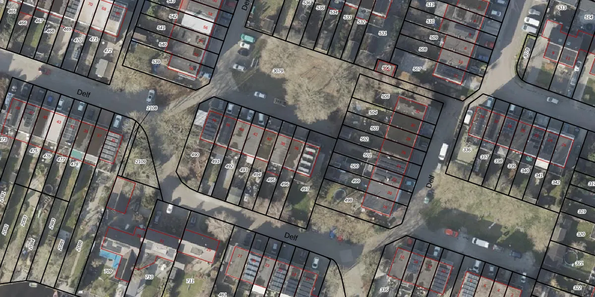 Het perceel waarop Delf 36 staat heeft een oppervlakte van 155 m². Dit is een middelgroot perceel. De perceeloppervlakte wordt geregistreerd door het Kadaster. Gedetailleerde informatie over de maten van dit perceel kunt u vinden in het rapport Kadastrale kaart met maatvoering van Delf 36.