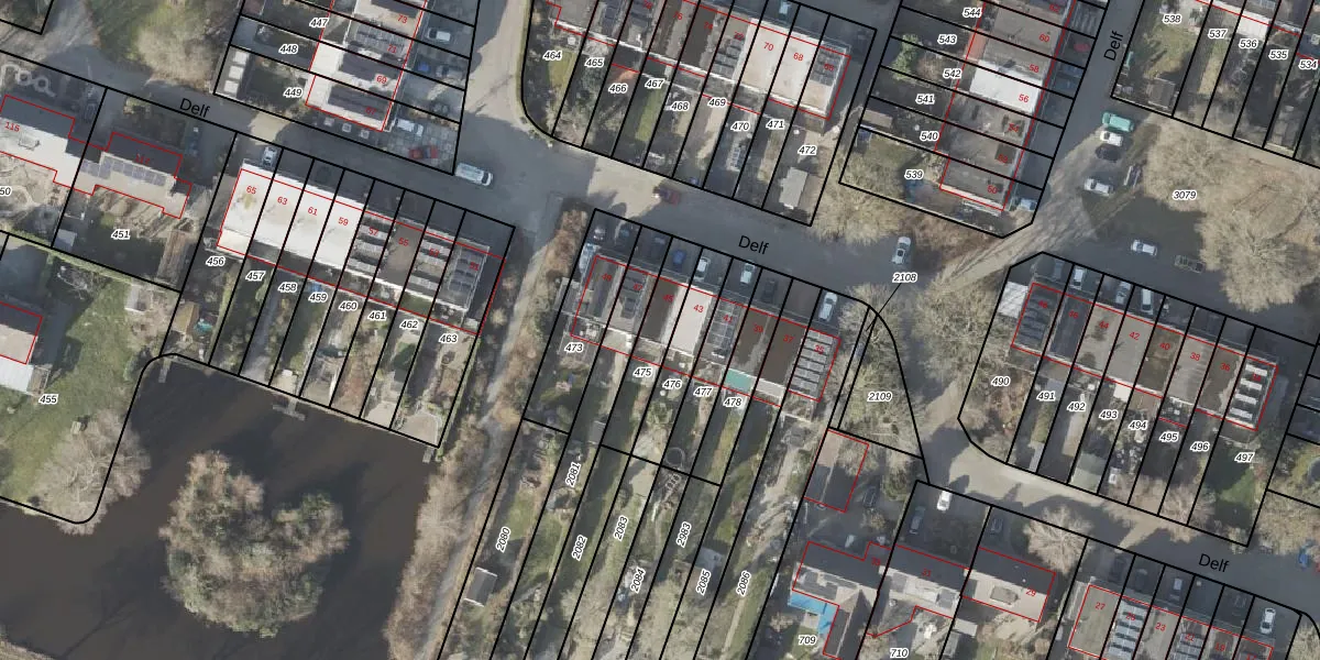 Het perceel waarop Delf 45 staat heeft een oppervlakte van 162 m². Dit is een middelgroot perceel. De perceeloppervlakte wordt geregistreerd door het Kadaster. Gedetailleerde informatie over de maten van dit perceel kunt u vinden in het rapport Kadastrale kaart met maatvoering van Delf 45.