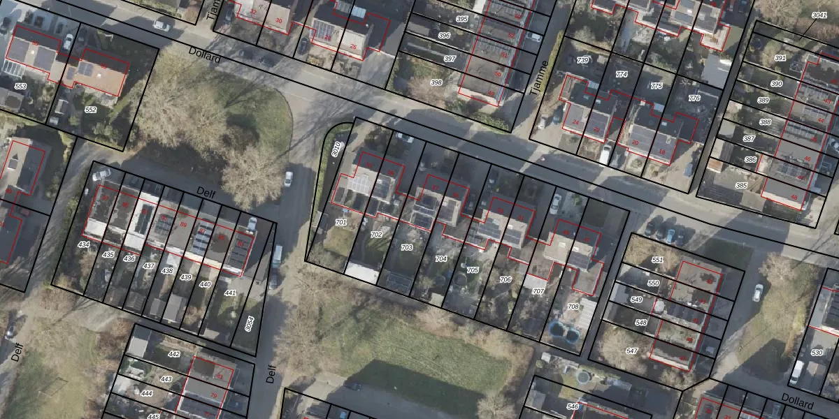 Gebruik de zoekbalk of klik op een perceel voor informatie over de adressen binnen dit perceel.
