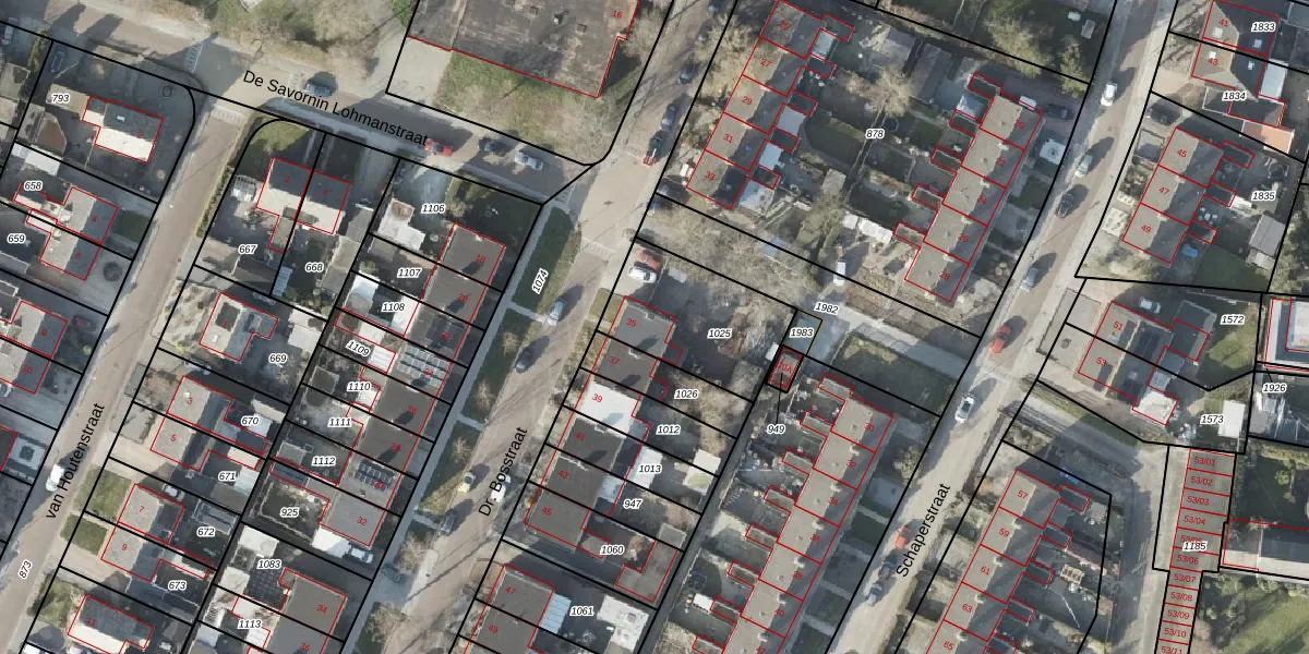 Gebruik de zoekbalk of klik op een perceel voor informatie over de adressen binnen dit perceel.