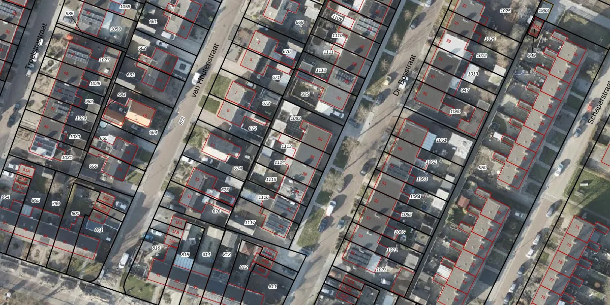 Gebruik de zoekbalk of klik op een perceel voor informatie over de adressen binnen dit perceel.