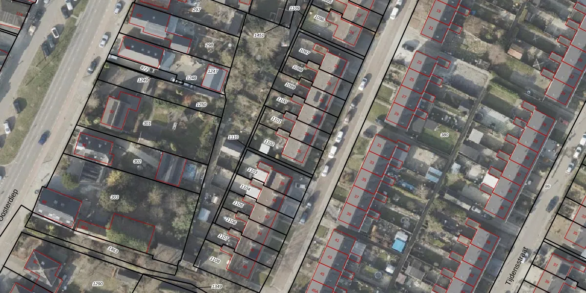Gebruik de zoekbalk of klik op een perceel voor informatie over de adressen binnen dit perceel.