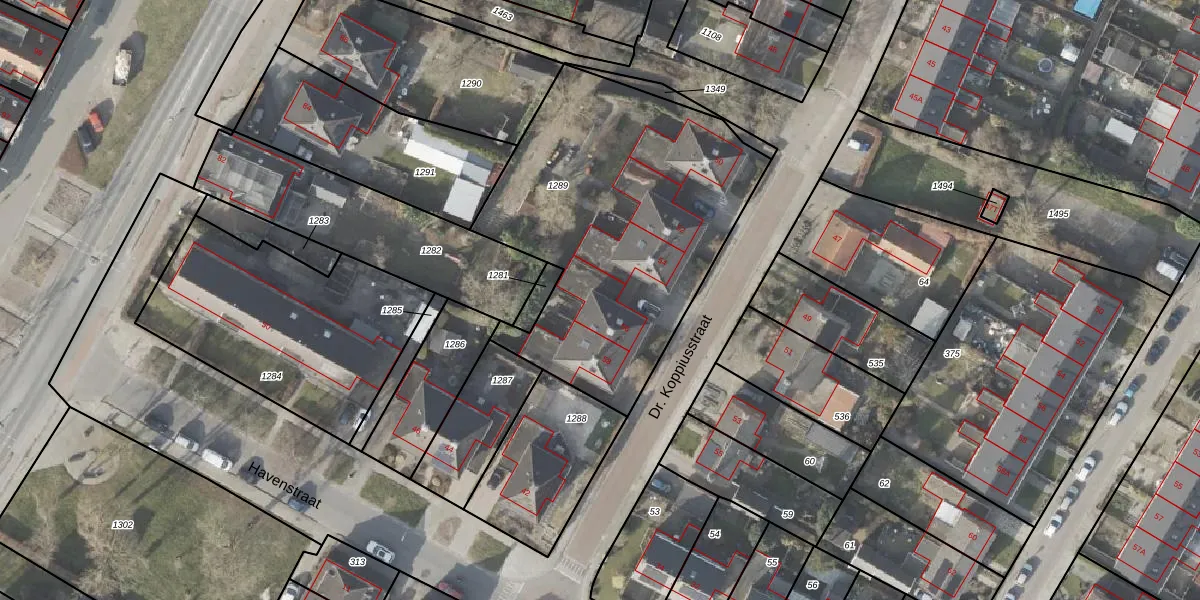 Het perceel waarop Dr. Koppiusstraat 56 staat heeft een oppervlakte van 1620 m². Dit is een zeer groot perceel. De perceeloppervlakte wordt geregistreerd door het Kadaster. Gedetailleerde informatie over de maten van dit perceel kunt u vinden in het rapport Kadastrale kaart met maatvoering van Dr. Koppiusstraat 56.