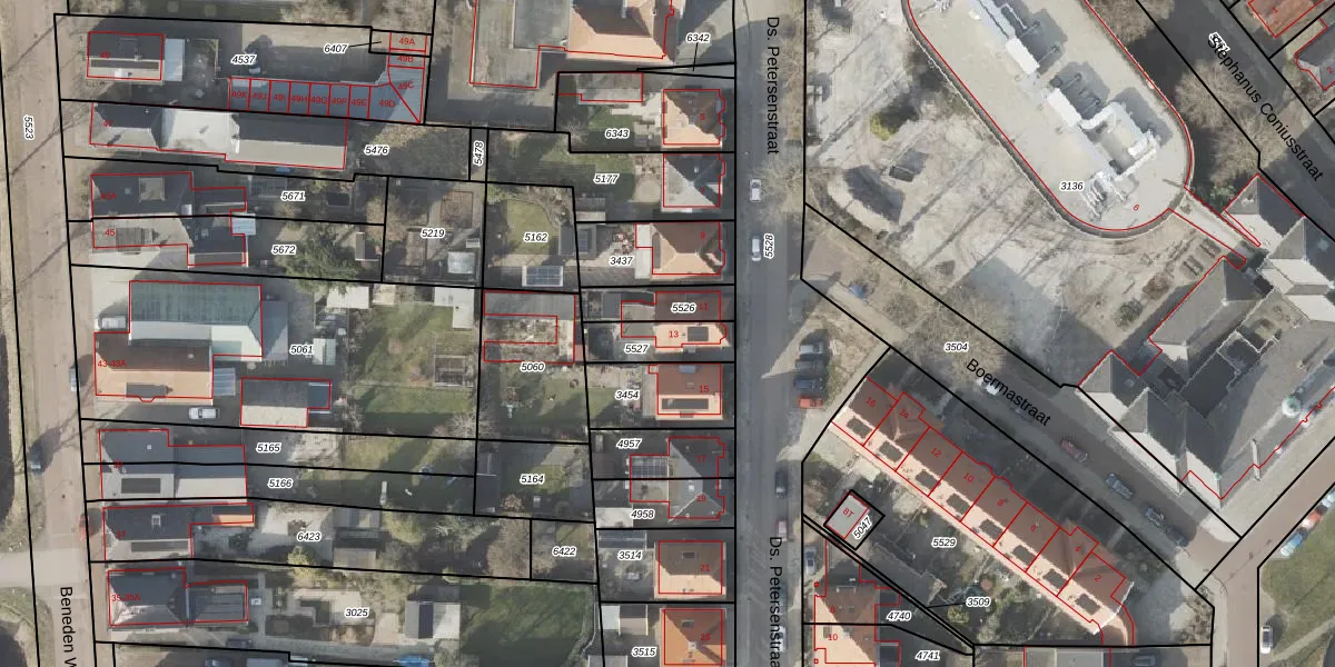 Ds. Petersenstraat 13 is gelegen op kadastraal perceel VDM00D5527. Deze kadastrale aanduiding is uniek en wordt gebruikt door het Kadaster om eigendomsrechten en andere zakelijke rechten vast te leggen. Het perceel maakt onderdeel uit van de kadastrale gemeente Veendam.