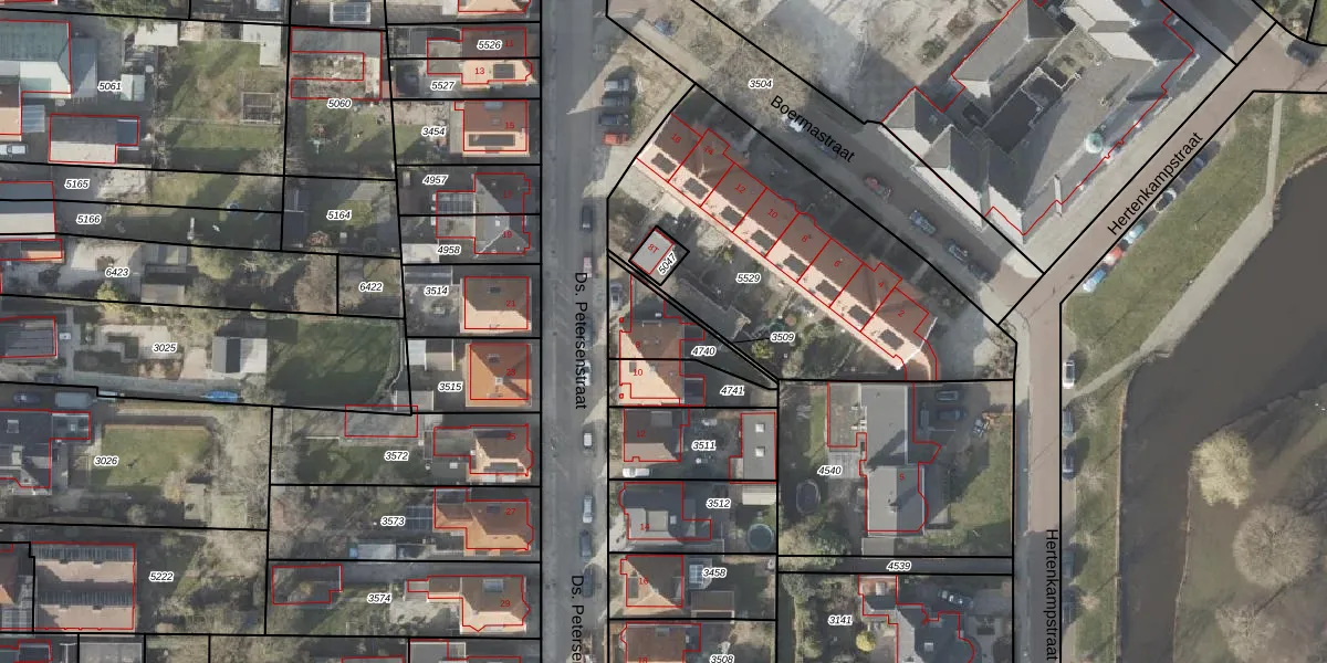 Ds. Petersenstraat 8 is gelegen op kadastraal perceel VDM00D4740. Deze kadastrale aanduiding is uniek en wordt gebruikt door het Kadaster om eigendomsrechten en andere zakelijke rechten vast te leggen. Het perceel maakt onderdeel uit van de kadastrale gemeente Veendam.