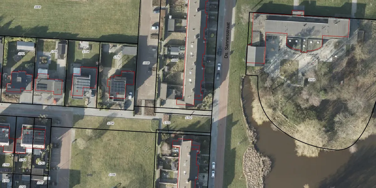 Ds. Sannesstraat 24 is gelegen op kadastraal perceel VDM00L1699. Deze kadastrale aanduiding is uniek en wordt gebruikt door het Kadaster om eigendomsrechten en andere zakelijke rechten vast te leggen. Het perceel maakt onderdeel uit van de kadastrale gemeente Veendam.