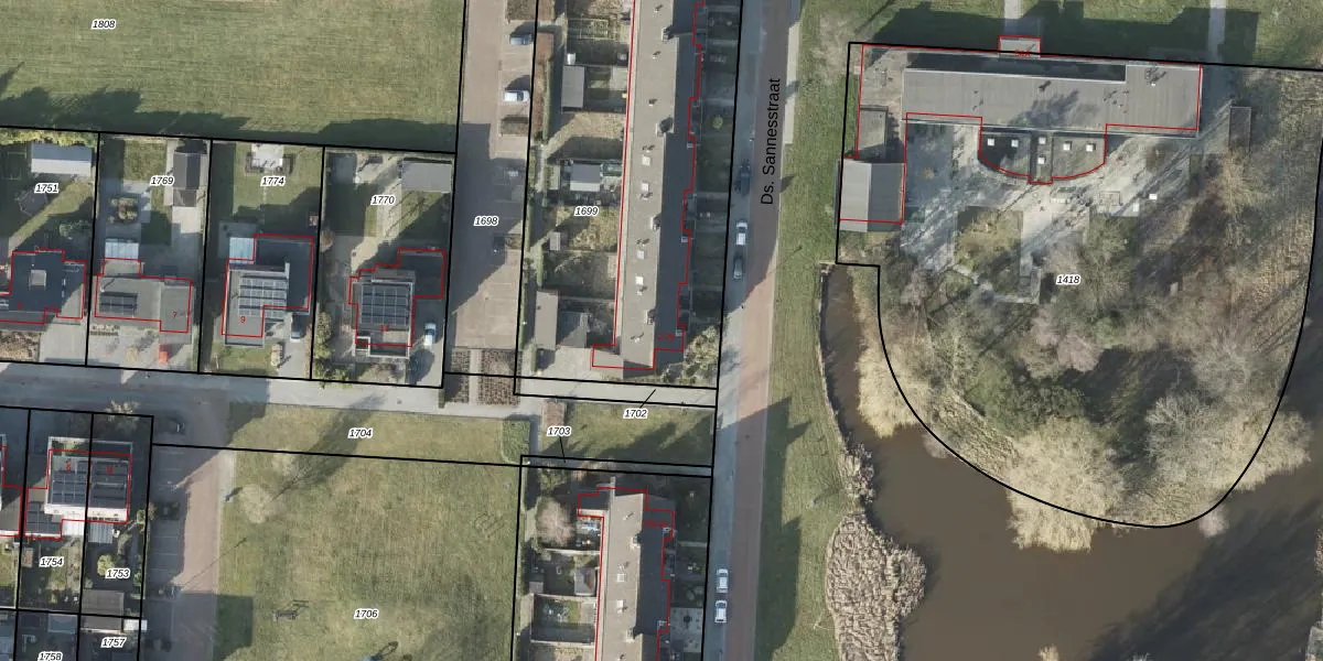 Het perceel waarop Ds. Sannesstraat 26 staat heeft een oppervlakte van 2085 m². Dit is een zeer groot perceel. De perceeloppervlakte wordt geregistreerd door het Kadaster. Gedetailleerde informatie over de maten van dit perceel kunt u vinden in het rapport Kadastrale kaart met maatvoering van Ds. Sannesstraat 26.
