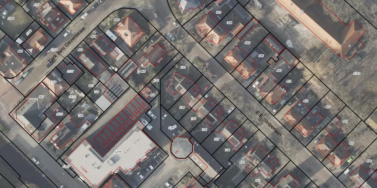 Gebruik de zoekbalk of klik op een perceel voor informatie over de adressen binnen dit perceel.
