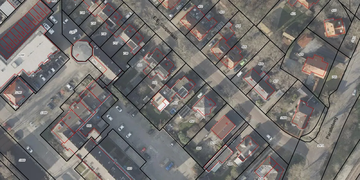 Gebruik de zoekbalk of klik op een perceel voor informatie over de adressen binnen dit perceel.