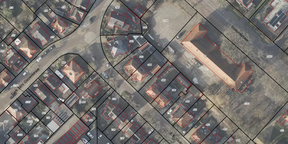 Gebruik de zoekbalk of klik op een perceel voor informatie over de adressen binnen dit perceel.