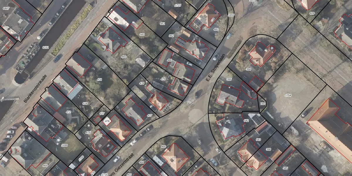 Gebruik de zoekbalk of klik op een perceel voor informatie over de adressen binnen dit perceel.