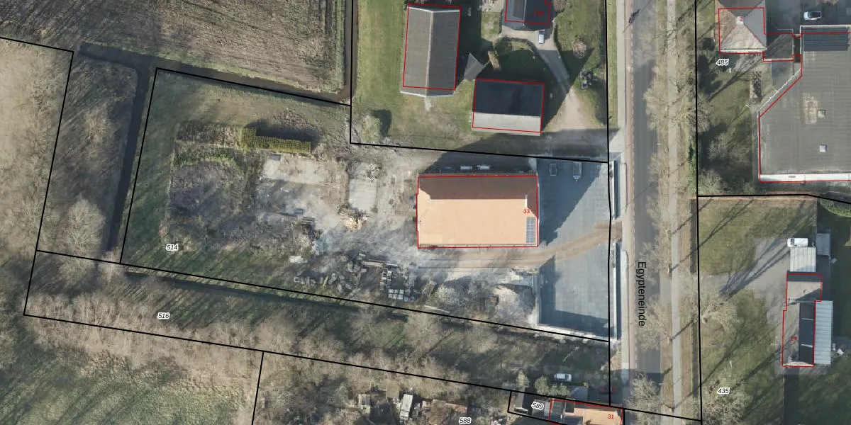 Egypteneinde 33 is gelegen op kadastraal perceel VDM00R514. Deze kadastrale aanduiding is uniek en wordt gebruikt door het Kadaster om eigendomsrechten en andere zakelijke rechten vast te leggen. Het perceel maakt onderdeel uit van de kadastrale gemeente Veendam.