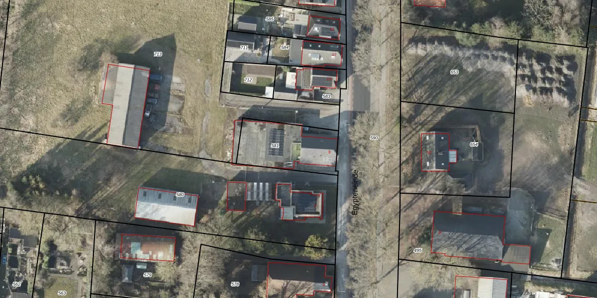 Egypteneinde 9 is gelegen op kadastraal perceel VDM00R581. Deze kadastrale aanduiding is uniek en wordt gebruikt door het Kadaster om eigendomsrechten en andere zakelijke rechten vast te leggen. Het perceel maakt onderdeel uit van de kadastrale gemeente Veendam.