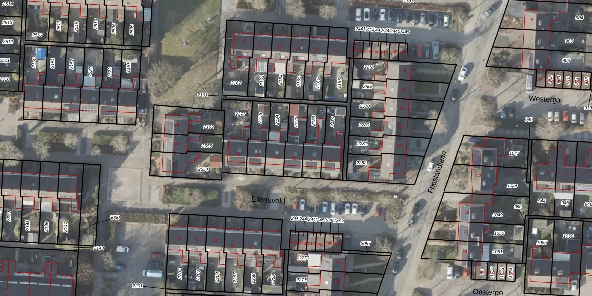 Het perceel waarop Ellertsveld 25 staat heeft een oppervlakte van 157 m². Dit is een middelgroot perceel. De perceeloppervlakte wordt geregistreerd door het Kadaster. Gedetailleerde informatie over de maten van dit perceel kunt u vinden in het rapport Kadastrale kaart met maatvoering van Ellertsveld 25.