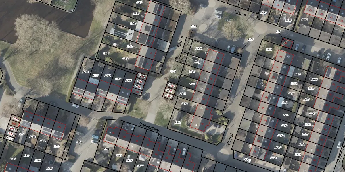 Gebruik de zoekbalk of klik op een perceel voor informatie over de adressen binnen dit perceel.