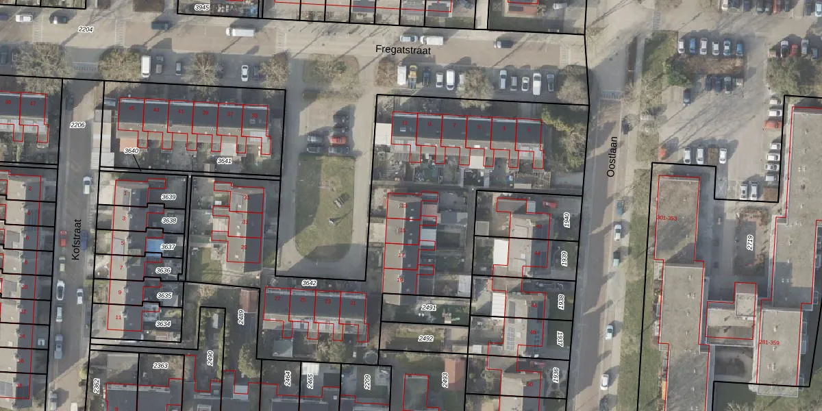 Het perceel waarop Fregatstraat 13 staat heeft een oppervlakte van 2964 m². Dit is een zeer groot perceel. De perceeloppervlakte wordt geregistreerd door het Kadaster. Gedetailleerde informatie over de maten van dit perceel kunt u vinden in het rapport Kadastrale kaart met maatvoering van Fregatstraat 13.