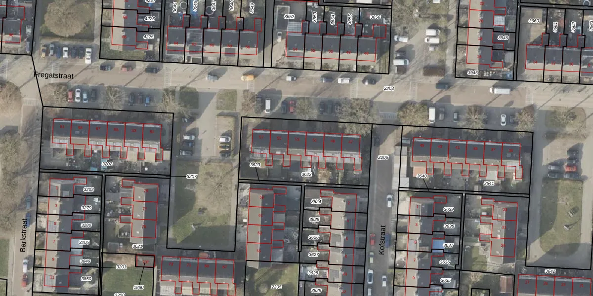 Het perceel waarop Fregatstraat 53 staat heeft een oppervlakte van 938 m². Dit is een groot perceel. De perceeloppervlakte wordt geregistreerd door het Kadaster. Gedetailleerde informatie over de maten van dit perceel kunt u vinden in het rapport Kadastrale kaart met maatvoering van Fregatstraat 53.
