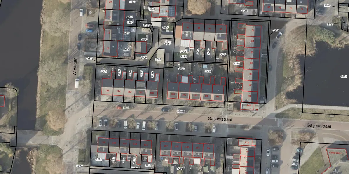 Het perceel waarop Galjootstraat 104 staat heeft een oppervlakte van 911 m². Dit is een groot perceel. De perceeloppervlakte wordt geregistreerd door het Kadaster. Gedetailleerde informatie over de maten van dit perceel kunt u vinden in het rapport Kadastrale kaart met maatvoering van Galjootstraat 104.