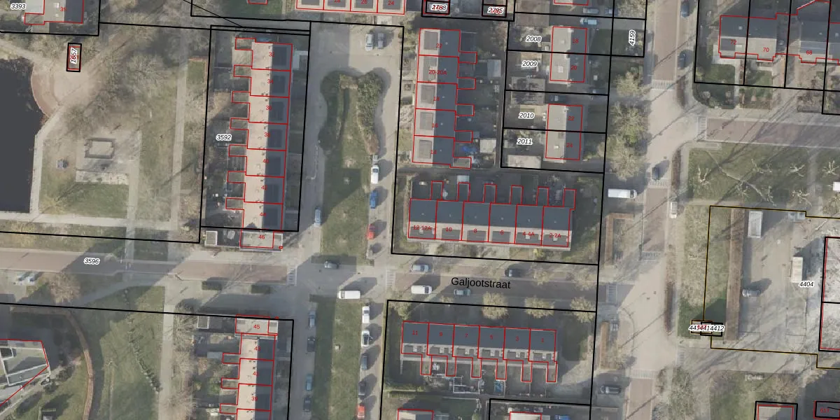 Het perceel waarop Galjootstraat 12 staat heeft een oppervlakte van 5613 m². Dit is een zeer groot perceel. De perceeloppervlakte wordt geregistreerd door het Kadaster. Gedetailleerde informatie over de maten van dit perceel kunt u vinden in het rapport Kadastrale kaart met maatvoering van Galjootstraat 12.