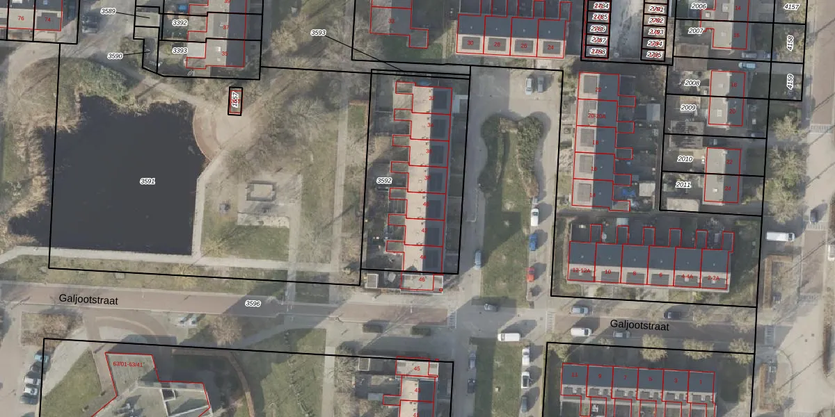 Galjootstraat 40 is gelegen op kadastraal perceel VDM00C3592. Deze kadastrale aanduiding is uniek en wordt gebruikt door het Kadaster om eigendomsrechten en andere zakelijke rechten vast te leggen. Het perceel maakt onderdeel uit van de kadastrale gemeente Veendam.