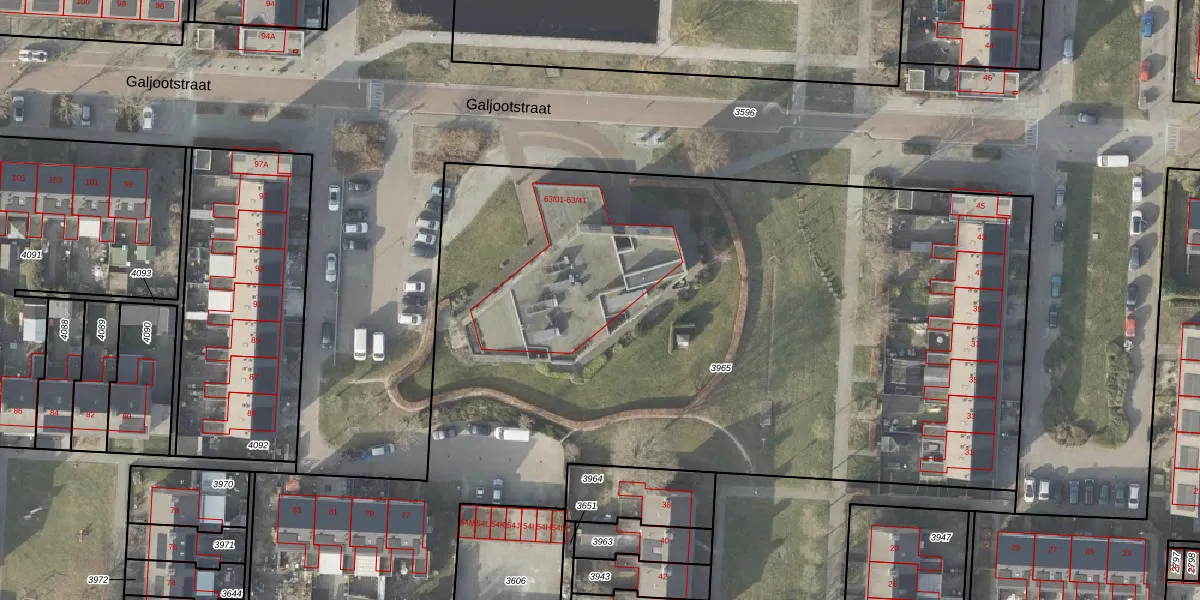 Galjootstraat 63-13 is gelegen op kadastraal perceel VDM00C3965. Deze kadastrale aanduiding is uniek en wordt gebruikt door het Kadaster om eigendomsrechten en andere zakelijke rechten vast te leggen. Het perceel maakt onderdeel uit van de kadastrale gemeente Veendam.