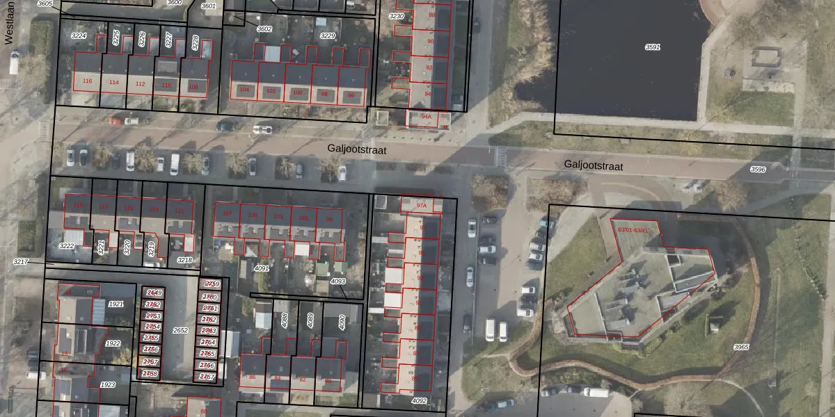 Het perceel waarop Galjootstraat 97-A staat heeft een oppervlakte van 1040 m². Dit is een zeer groot perceel. De perceeloppervlakte wordt geregistreerd door het Kadaster. Gedetailleerde informatie over de maten van dit perceel kunt u vinden in het rapport Kadastrale kaart met maatvoering van Galjootstraat 97-A.