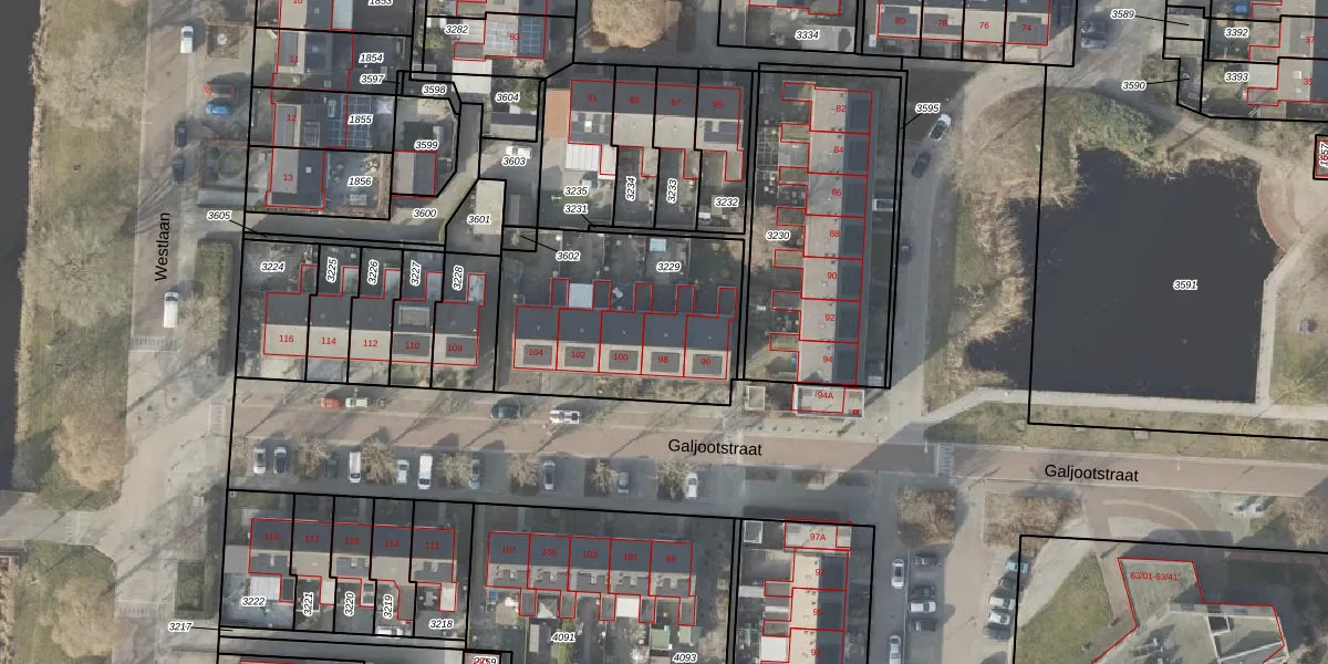 Het perceel waarop Galjootstraat 98 staat heeft een oppervlakte van 911 m². Dit is een groot perceel. De perceeloppervlakte wordt geregistreerd door het Kadaster. Gedetailleerde informatie over de maten van dit perceel kunt u vinden in het rapport Kadastrale kaart met maatvoering van Galjootstraat 98.