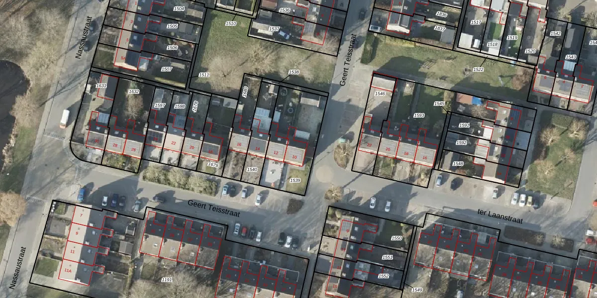 Het perceel waarop Geert Teisstraat 10 staat heeft een oppervlakte van 545 m². Dit is een groot perceel. De perceeloppervlakte wordt geregistreerd door het Kadaster. Gedetailleerde informatie over de maten van dit perceel kunt u vinden in het rapport Kadastrale kaart met maatvoering van Geert Teisstraat 10.