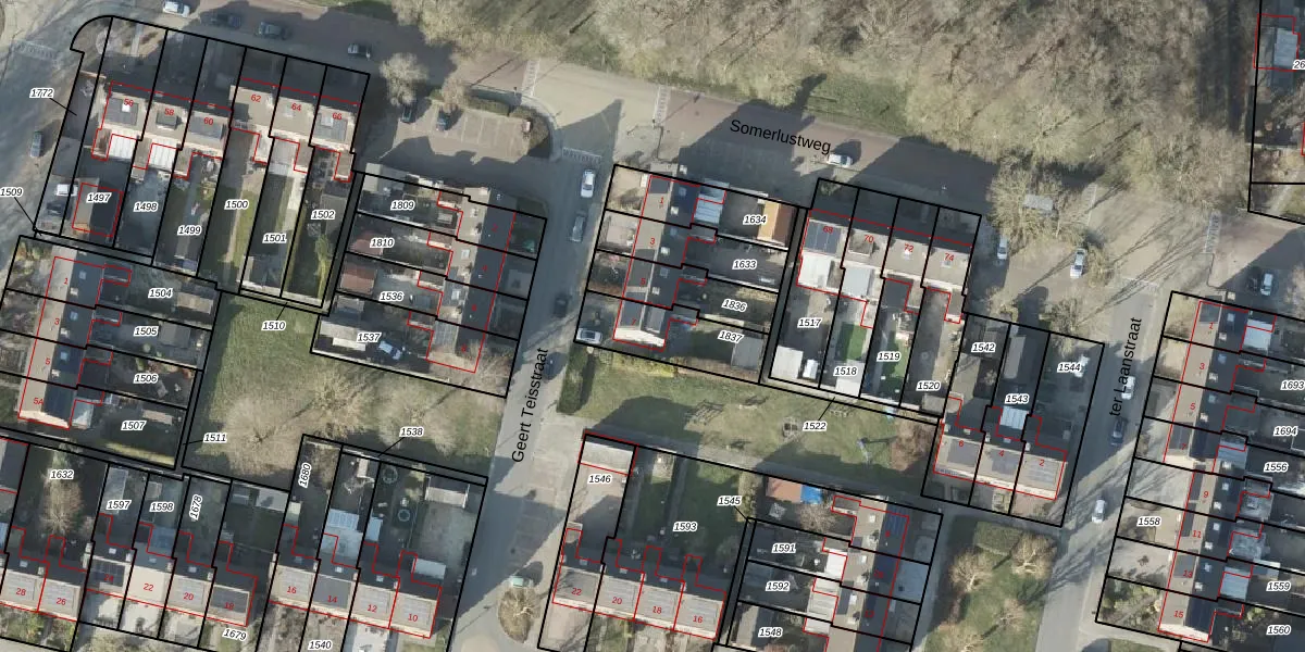Het perceel waarop Geert Teisstraat 7 staat heeft een oppervlakte van 237 m². Dit is een middelgroot perceel. De perceeloppervlakte wordt geregistreerd door het Kadaster. Gedetailleerde informatie over de maten van dit perceel kunt u vinden in het rapport Kadastrale kaart met maatvoering van Geert Teisstraat 7.