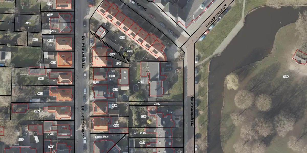 Gebruik de zoekbalk of klik op een perceel voor informatie over de adressen binnen dit perceel.