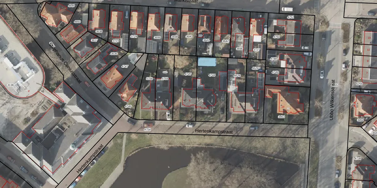 Gebruik de zoekbalk of klik op een perceel voor informatie over de adressen binnen dit perceel.