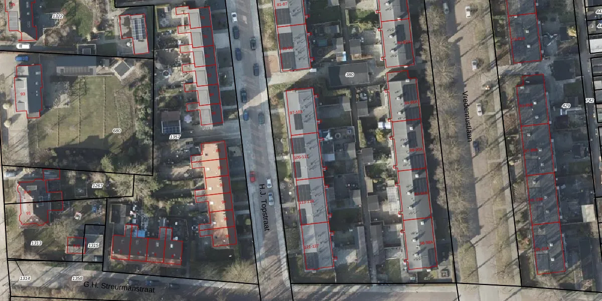 Het perceel waarop H.J. Topstraat 107 staat heeft een oppervlakte van 6520 m². Dit is een zeer groot perceel. De perceeloppervlakte wordt geregistreerd door het Kadaster. Gedetailleerde informatie over de maten van dit perceel kunt u vinden in het rapport Kadastrale kaart met maatvoering van H.J. Topstraat 107.