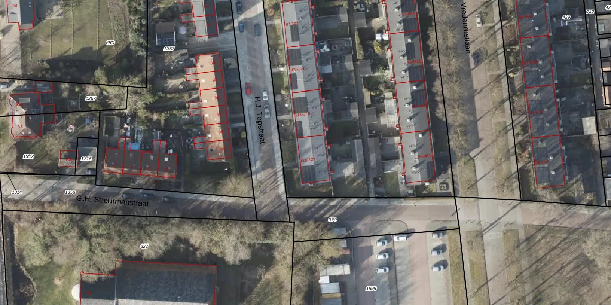 Het perceel waarop H.J. Topstraat 123 staat heeft een oppervlakte van 6520 m². Dit is een zeer groot perceel. De perceeloppervlakte wordt geregistreerd door het Kadaster. Gedetailleerde informatie over de maten van dit perceel kunt u vinden in het rapport Kadastrale kaart met maatvoering van H.J. Topstraat 123.