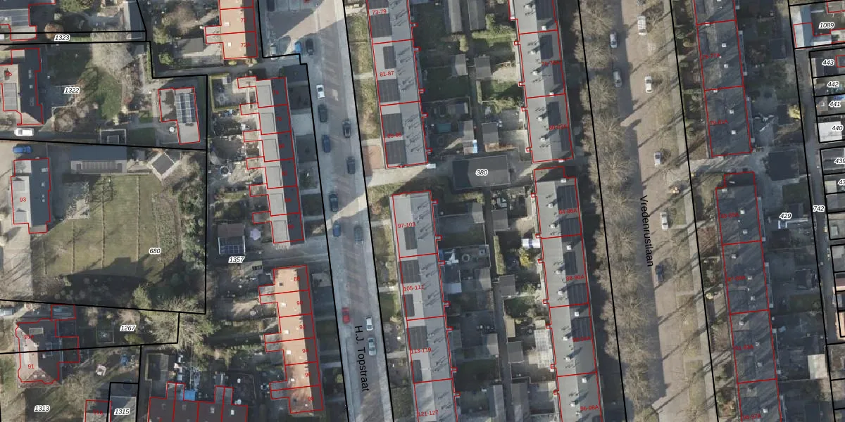 Het perceel waarop H.J. Topstraat 97 staat heeft een oppervlakte van 6520 m². Dit is een zeer groot perceel. De perceeloppervlakte wordt geregistreerd door het Kadaster. Gedetailleerde informatie over de maten van dit perceel kunt u vinden in het rapport Kadastrale kaart met maatvoering van H.J. Topstraat 97.