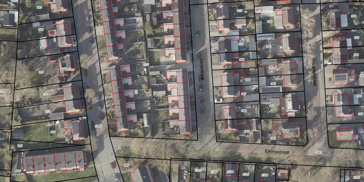 Het perceel waarop Irenestraat 14 staat heeft een oppervlakte van 4120 m². Dit is een zeer groot perceel. De perceeloppervlakte wordt geregistreerd door het Kadaster. Gedetailleerde informatie over de maten van dit perceel kunt u vinden in het rapport Kadastrale kaart met maatvoering van Irenestraat 14.