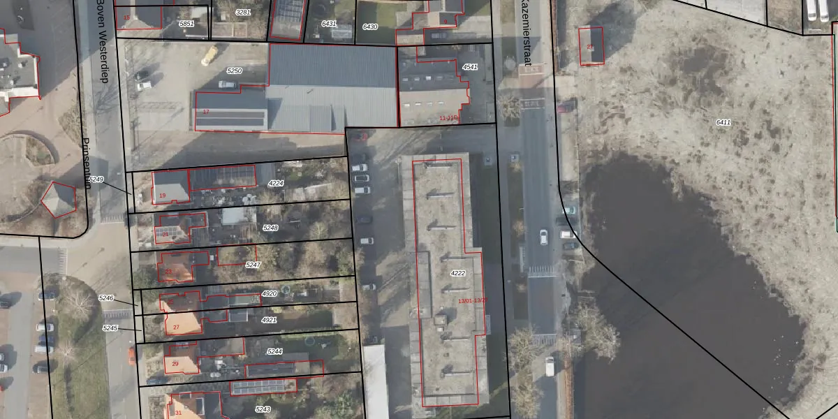 Het perceel waarop J. Kazemierstraat 13-22 staat heeft een oppervlakte van 2475 m². Dit is een zeer groot perceel. De perceeloppervlakte wordt geregistreerd door het Kadaster. Gedetailleerde informatie over de maten van dit perceel kunt u vinden in het rapport Kadastrale kaart met maatvoering van J. Kazemierstraat 13-22.