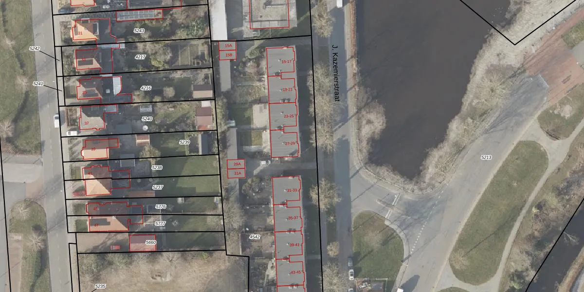 Het perceel waarop J. Kazemierstraat 27 staat heeft een oppervlakte van 4590 m². Dit is een zeer groot perceel. De perceeloppervlakte wordt geregistreerd door het Kadaster. Gedetailleerde informatie over de maten van dit perceel kunt u vinden in het rapport Kadastrale kaart met maatvoering van J. Kazemierstraat 27.