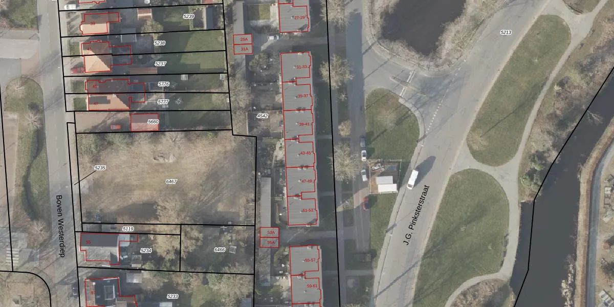 Het perceel waarop J. Kazemierstraat 43 staat heeft een oppervlakte van 4590 m². Dit is een zeer groot perceel. De perceeloppervlakte wordt geregistreerd door het Kadaster. Gedetailleerde informatie over de maten van dit perceel kunt u vinden in het rapport Kadastrale kaart met maatvoering van J. Kazemierstraat 43.