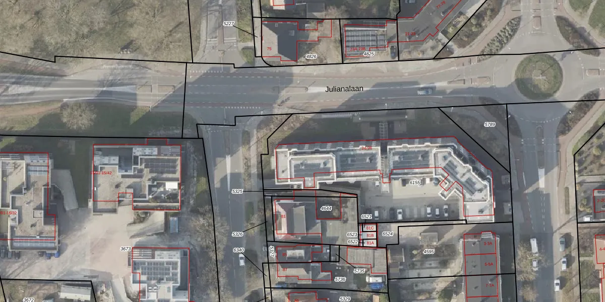 Het perceel waarop Julianalaan 94 staat heeft een oppervlakte van 2415 m². Dit is een zeer groot perceel. De perceeloppervlakte wordt geregistreerd door het Kadaster. Gedetailleerde informatie over de maten van dit perceel kunt u vinden in het rapport Kadastrale kaart met maatvoering van Julianalaan 94.