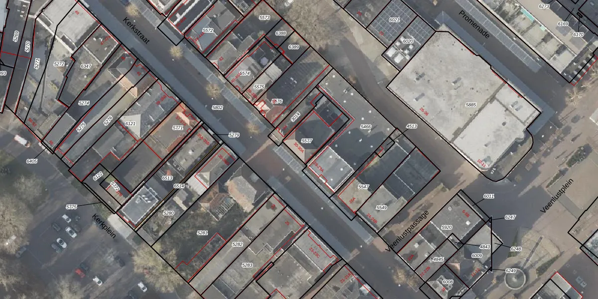 Kerkstraat 30 is gelegen op kadastraal perceel VDM00D5577. Deze kadastrale aanduiding is uniek en wordt gebruikt door het Kadaster om eigendomsrechten en andere zakelijke rechten vast te leggen. Het perceel maakt onderdeel uit van de kadastrale gemeente Veendam.