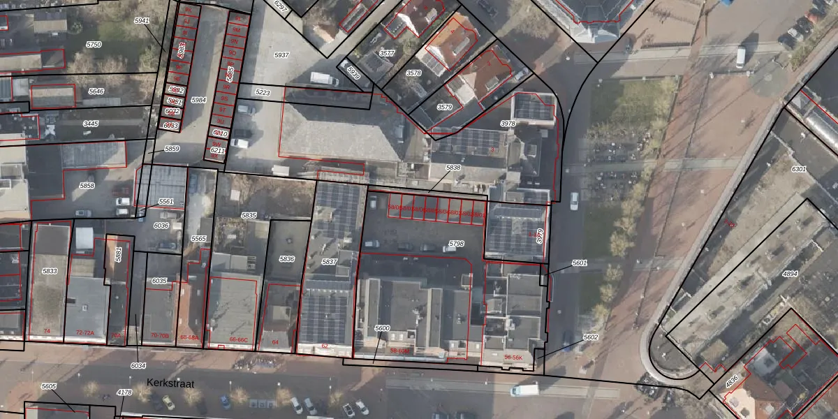 Het perceel waarop Kerkstraat 58-06 staat heeft een oppervlakte van 1538 m². Dit is een zeer groot perceel. De perceeloppervlakte wordt geregistreerd door het Kadaster. Gedetailleerde informatie over de maten van dit perceel kunt u vinden in het rapport Kadastrale kaart met maatvoering van Kerkstraat 58-06.