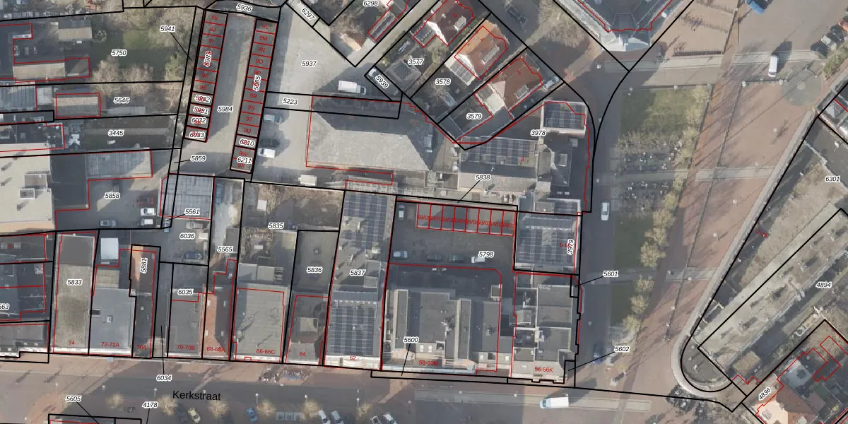 Het perceel waarop Kerkstraat 58-08 staat heeft een oppervlakte van 1538 m². Dit is een zeer groot perceel. De perceeloppervlakte wordt geregistreerd door het Kadaster. Gedetailleerde informatie over de maten van dit perceel kunt u vinden in het rapport Kadastrale kaart met maatvoering van Kerkstraat 58-08.