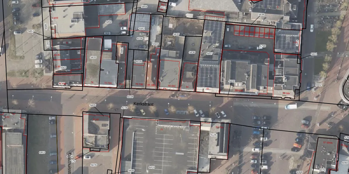 Het perceel waarop Kerkstraat 66 staat heeft een oppervlakte van 667 m². Dit is een groot perceel. De perceeloppervlakte wordt geregistreerd door het Kadaster. Gedetailleerde informatie over de maten van dit perceel kunt u vinden in het rapport Kadastrale kaart met maatvoering van Kerkstraat 66.