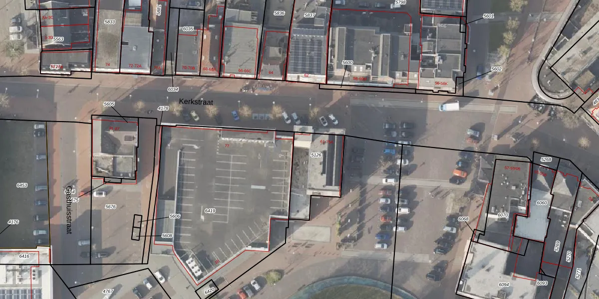 Het perceel waarop Kerkstraat 67 staat heeft een oppervlakte van 415 m². Dit is een groot perceel. De perceeloppervlakte wordt geregistreerd door het Kadaster. Gedetailleerde informatie over de maten van dit perceel kunt u vinden in het rapport Kadastrale kaart met maatvoering van Kerkstraat 67.