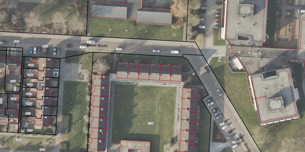 Het perceel waarop Kieler Bocht 100 staat heeft een oppervlakte van 7870 m². Dit is een zeer groot perceel. De perceeloppervlakte wordt geregistreerd door het Kadaster. Gedetailleerde informatie over de maten van dit perceel kunt u vinden in het rapport Kadastrale kaart met maatvoering van Kieler Bocht 100.